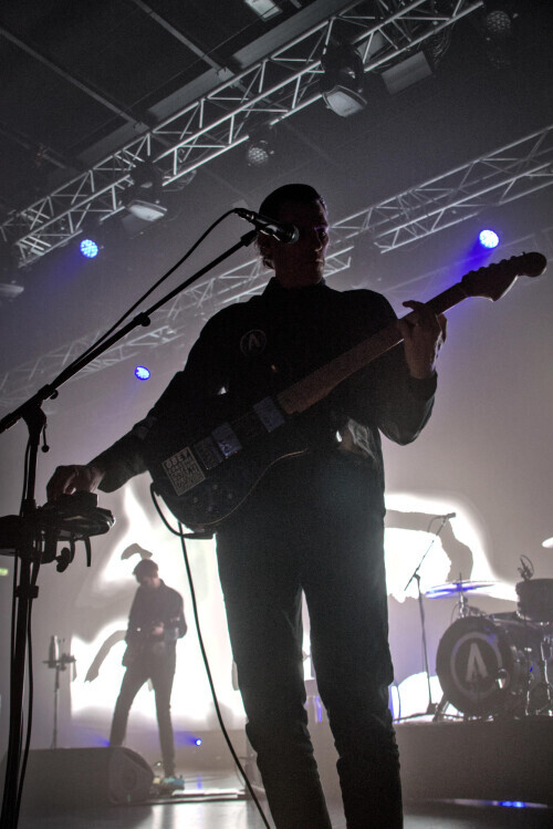 La lumière était somptueuse, avait beaucoup d'effets de clair-obscur en rythme avec la musique, chacun avait le droit à son moment de gloire, même si le bassiste était quelque peu caché dans un coin de la scène. Le panneau LED géant derrière le groupe permettait de diffuser plusieurs animations, des captations en direct des différents membres avec quelques effets visuels (quelque peu discutables sur Lines ou aveuglants sur Pills), mais aussi un karaoké sur le "Feel, Trust, Obey" de Dangervisit.
